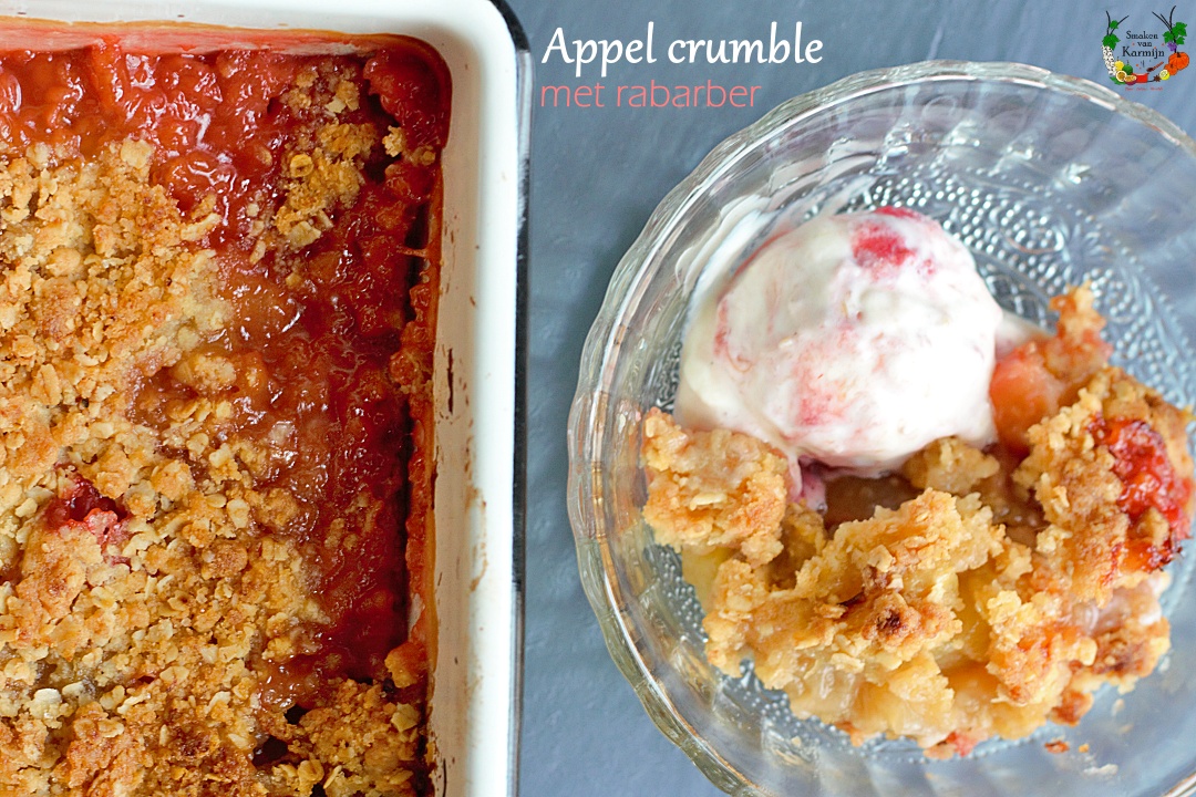 Appel crumble is voor mij echt ‘comfortfood’. Warm geurend fruit met een laagje knapperig koekdeeg, lepel crème fraîche of vanille ijs er bij en je kunt even vergeten dat de lente nog niet is begonnen eind mei. Het is zo gemaakt en ook nog simpel om te maken, dus perfect als last minute dessert of voor een regenachtige zondagmiddag. Vaak maak ik de crumble topping van te voren en zet die in de koelkast klaar. Het fruit kun je ook van te voren schoonmaken, schillen en snijden, beetje citroen en agave erdoor en dan hoef je na het eten alleen nog het fruit in de ovenschaal te doen, crumble erover en 30 minuutjes geduld. De Engelsen maken er graag vanillesaus bij, maar zelf vind ik het contrast van warm met koud heel lekker, dus ga ik liever voor vanille ijs. Appels gebruik ik meestal als basis en daar meng ik dan rabarber, pruim of diepvries- kersen of bosbessen door.